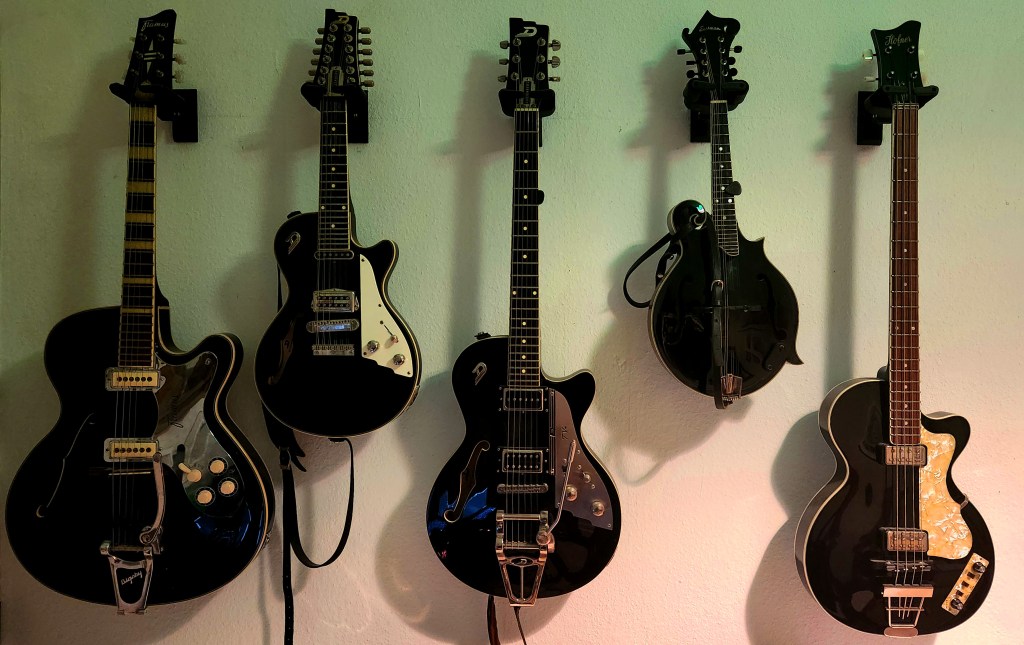 I play all the instruments in my songs (except for the drums, which I create in my DAW) and I sing all the vocals. I play mandolin, guitar, mandoguitar and bass. As a person who wants to own as little as possible, I own exactly one instrument per genre, but very good ones (but… why then two guitars…? The guitar on the left is for guests only, not for me).